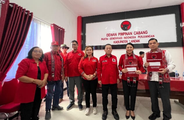 MAJALAHCEO.co.id, Landak Kalbar – Ratusan pengurus Anak ranting, DPC, PAC PDI Perjuangan Kabupaten Landak dan jajaran pengurus Partai Gerindra mengantar pasangan Bakal Calon (Bacalon) Bupati Landak, dr. Karolin Margret Natasa, MH dan Bacalon Wakil Bupati Landak, Erani, ST. MT periode 2025-2030 mengembalikan formulir pendaftaran Bacalon Kepala daerah disekretariat DPC PDI Perjuangan Kabupaten Landak Rabu (24/04/2024).