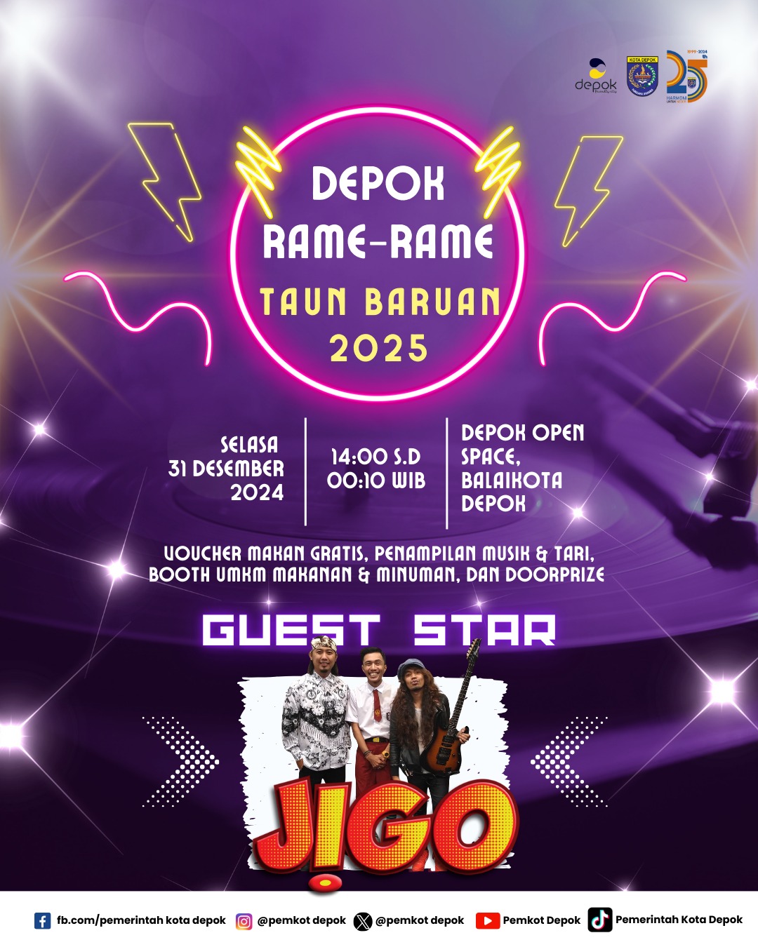 MAJALAHCEO.co.id, Kota Depok – Dalam rangka menyambut tahun baru 2025, Pemerintah Kota Depok, Jawa Barat menggelar event bertajuk “Depok Rame-Rame Tahun Baruan 2025” bertempat di Depok Open Space, Balai Kota Depok, Selasa 31 Desember 2024 pukul 14.00 sampai dengan 00.10 WIB.