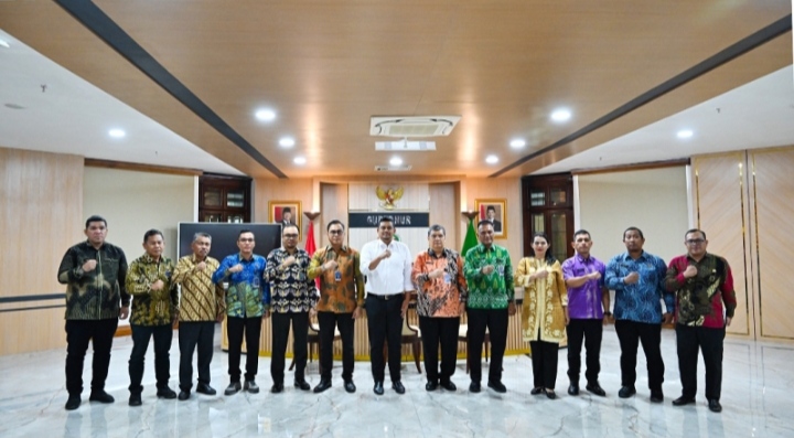 Teks foto: Gubernur Sumut Bobby Nasution menerima kunjungan Kepala Kanwil Ditjen Imigrasi Sumut Teodorus Simarmata dan Kepala Kanwil Ditjen Pemasyarakatan Sumut Yudi Suseno, Jumat (9/5/2025).