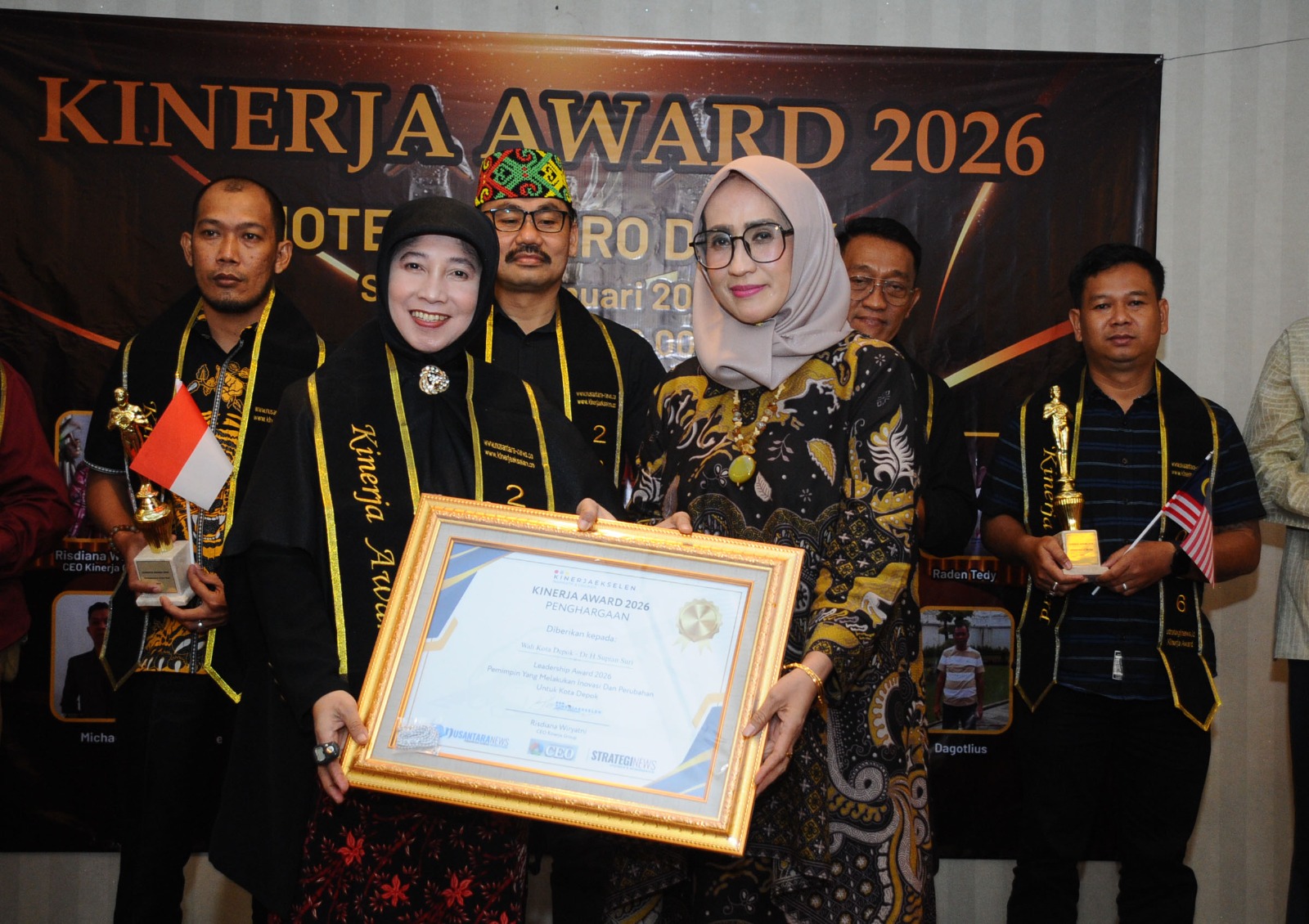 Penghargaan juga diberkan kepada Ketua IWAPI Sukmajaya, Ketua IPEMI Kota Depok, Komunitas SALZI, dan sejumlah tokoh lainnya.